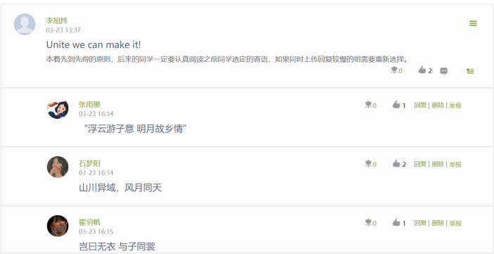 李旭炜老师之前引导员工们收集网上所报到的中国与其他国家之间在互赠防疫物资时所题写的寄语,并将其翻译成英文并了解其出处。随后李老师组织了几位同学把这些图片编辑成短片,让更多的人可以看到和感受到疫情当前全人类团结一致,守望相助的情谊。李老师表示:这次的教学活动让我深深的感受到了这群员工积极向上,关注时事是有担当有思想的新一代年轻人,同时他们有能力,有技术对于新知识新技能的学习和掌握是我们老师们要向他们学习的。我为我能够成为他们的老师而感到幸福,也为祖国有这样的年轻人而骄傲!