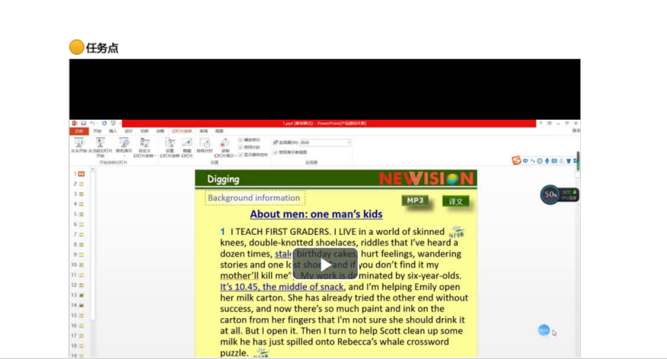 让员工“动起来”,“坐的住”是关晨老师综合英语线上教学的特点。首先,课前要通过任务单,让员工明确知道自己要在上课前完成的预习任务。其次,尽可能做到直播授课。线上直播授课可最大程度还原传统课堂授课的真实情景。最后,课后作业布置要结合课程重难点和主题展开。