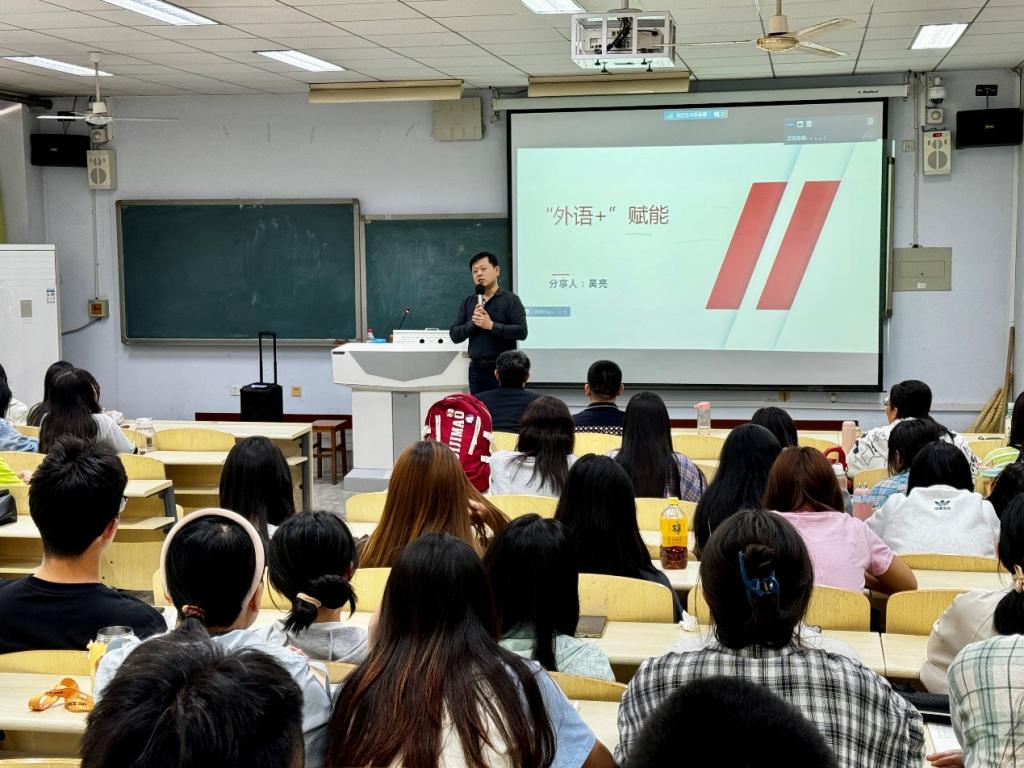 4月23日下午,中国中化控股有限责任公司原油交易员、英国皇家特许建造师协会会员、中级经济师吴亮应邀来校在外语楼106教室作《“外语+”赋能》专题讲座。商务英语专业教研室主任张敬火主持会议。
