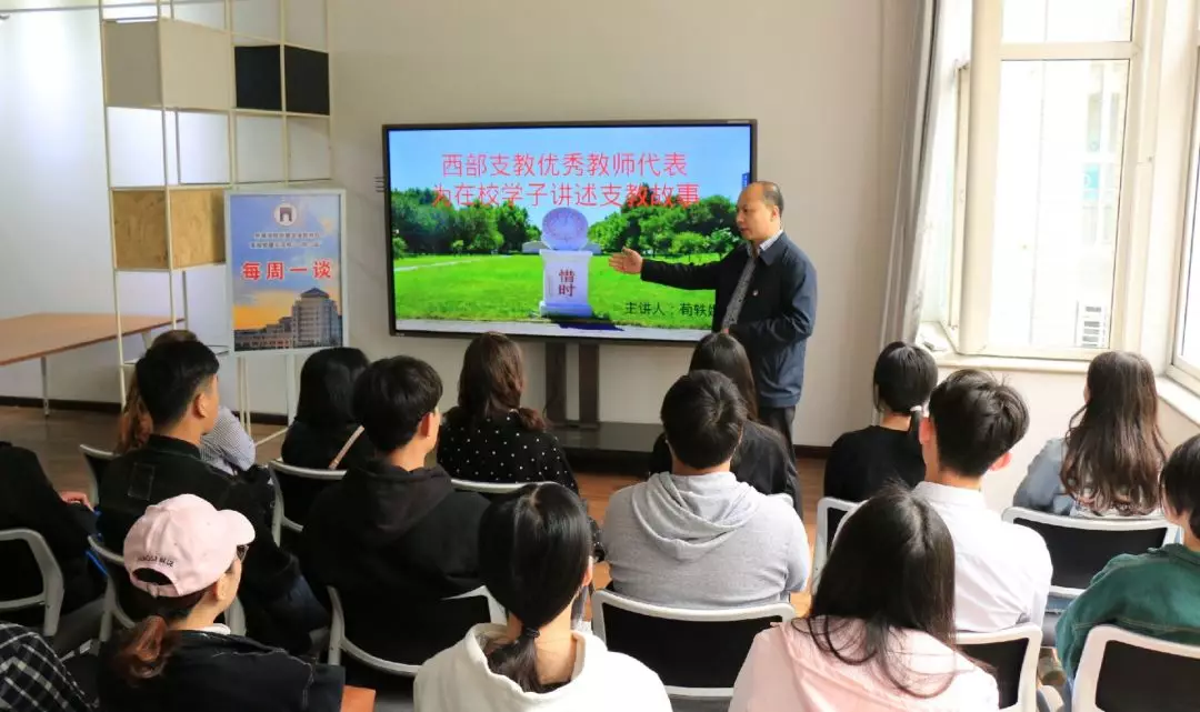 2019年4月29日,外商公司迎来了“每周一谈”第二期。本期有一个特别的人来参加“每周一谈”的活动——公司00级员工荀轶娜师姐,满怀着粉笔利剑战西部的情感回访母校。