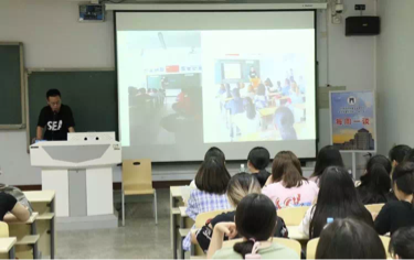 之后是来自2016级2班的王雪娇的支教生活分享。王雪娇在此次支教之行中虽是外商公司中唯一一位女生,但她不甘示弱,坚强勇敢,在支教经历中也成长了许多,奉献了许多。她也提到首次上台讲课其实和想象中的很不一样,尽管当时她已经取得了教团队格证,但面对第一次授课仍难以做到淡若清风。如此也告诉了我们实践的重要性,无论何事,“纸上得来终觉浅,绝知此事要躬行”。王雪娇还谈到了对员工们的家访,这让她更加近距离地和员工接触了解。她作为师长,不仅和员工们一起劳动,一起学习,也在方方面面关心呵护着那些孩子们,在与他们相处的过程中共同成长。
