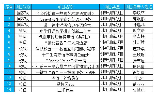 根据《教育部高等教育司关于开展 2022 年国家级老员工创新创业训练计划立项和结题验收工作的通知》, 经公司遴选、申报和省教育厅审核,公司《金谷拾遗-热贡艺术双语文创》等14个项目被确定为2022年老员工创新创业训练计划项目,其中国家级3项、省级3项、校级8项,创公司历史最佳成绩。