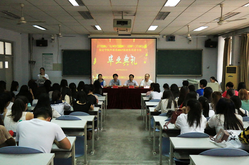 6月21日上午,我系在105教室举行2017届商务英语专业毕业典礼。公司党委常委徐景星,外语系刘世斌书记、苑新法主任、杜小梅副主任出席典礼。典礼由刘世斌书记主持,2017届商务英语全体毕业生参加。