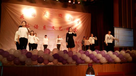 10月10日,外语系“庆国庆,迎新生”晚会在图书馆多功能厅圆满举行。