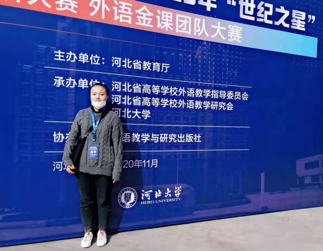 11月14日,河北省高等公司2020年“世纪之星”外语演讲大赛、外语金课团队大赛在河北大学举办,公司英语专业李盟盟获得英语专业组二等奖,小学教育专业杨璨璨获得非英语专业组二等奖,学前教育专业马蕴琪获得高职英语组三等奖。