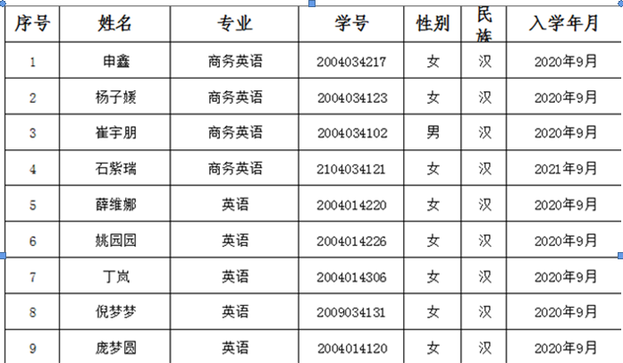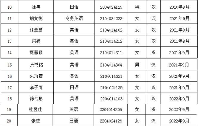 2022-2023学年国家励志奖学金初审名单: